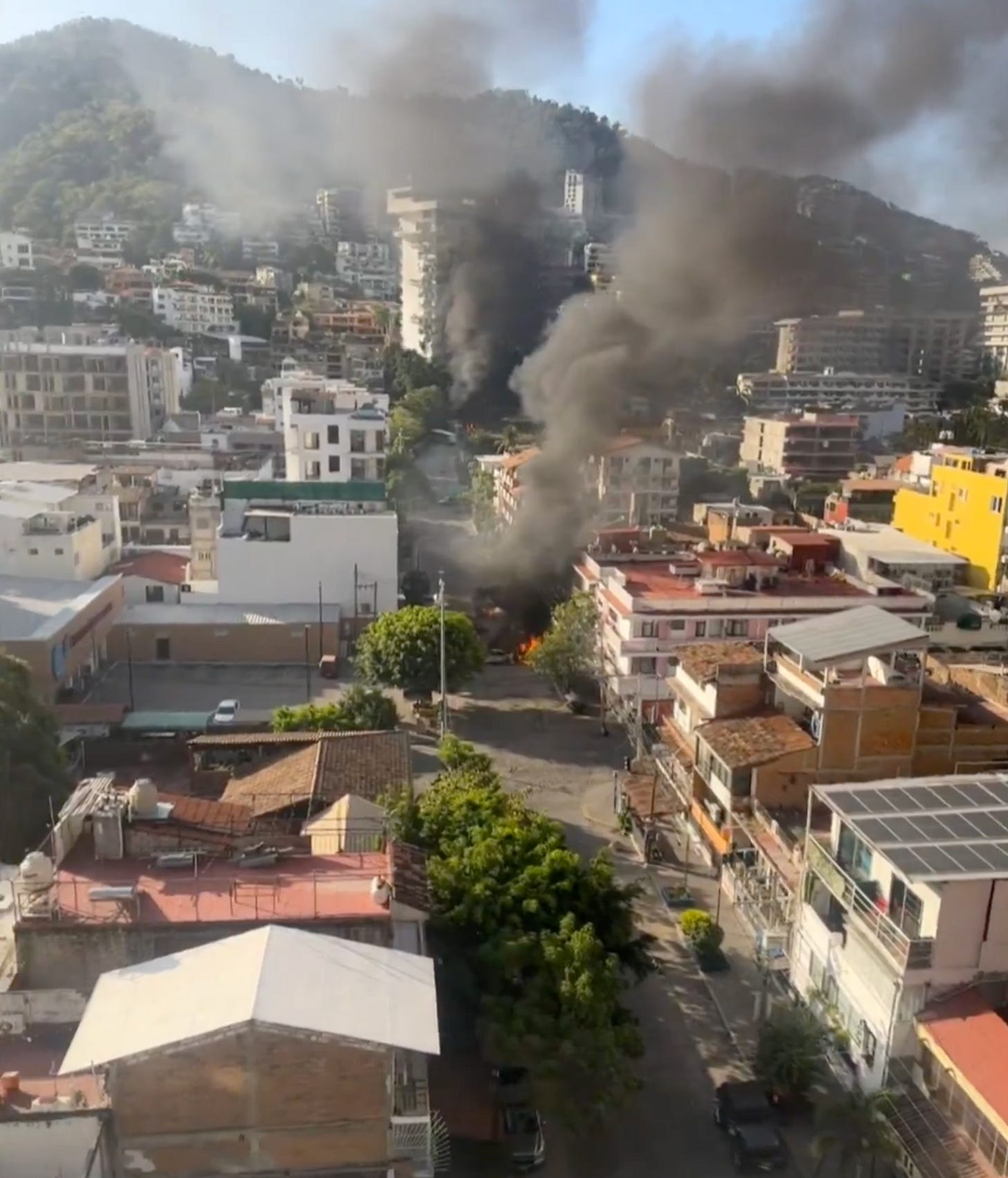 At 6 PM, Donna Kemp, a Puerto Vallarta tourist from Canada, posted a video of a helicopter flying over a flume of black smoke.