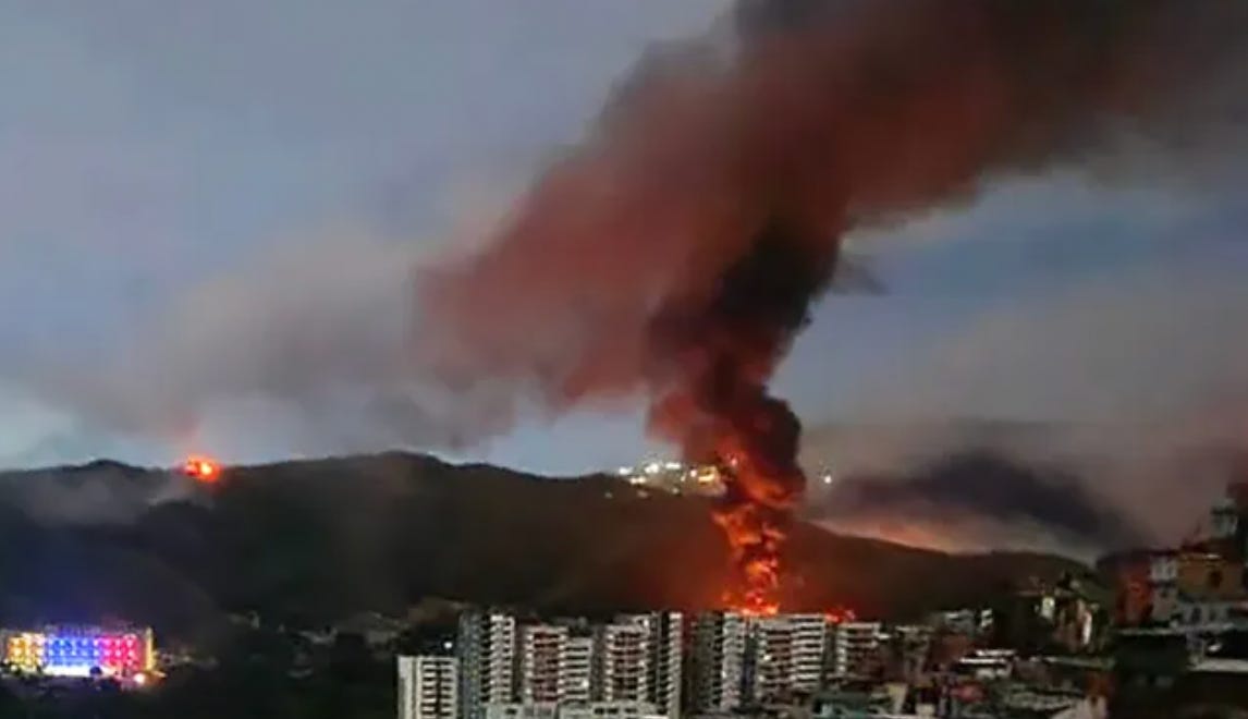 The dramatic U.S. announcement followed a night of explosions and rolling power outages in Caracas and other parts of Venezuela, with witnesses reporting flare-like streaks crossing the sky before blasts hit near major military installations in the capital, including the Fuerte Tiuna complex and the La Carlota area.
