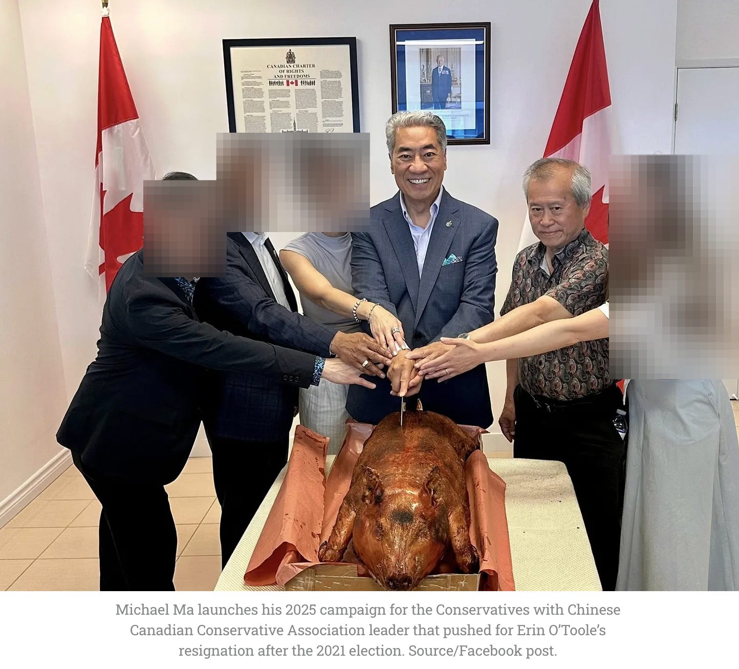 In April 2025, during the final stretch of the federal campaign, the CCCA convened another media event urging Chinese Canadians to “vote carefully” — stressing support for “the candidate they approve of, rather than the party.” Michael Ma was the Conservative candidate in Markham, where the CCCA holds its political press conferences. That framing is consistent with the cross-partisan hedging strategy Jamestown describes as central to Beijing’s political influence methodology: not loyalty to a party, but leverage over candidates regardless of partisan affiliation.