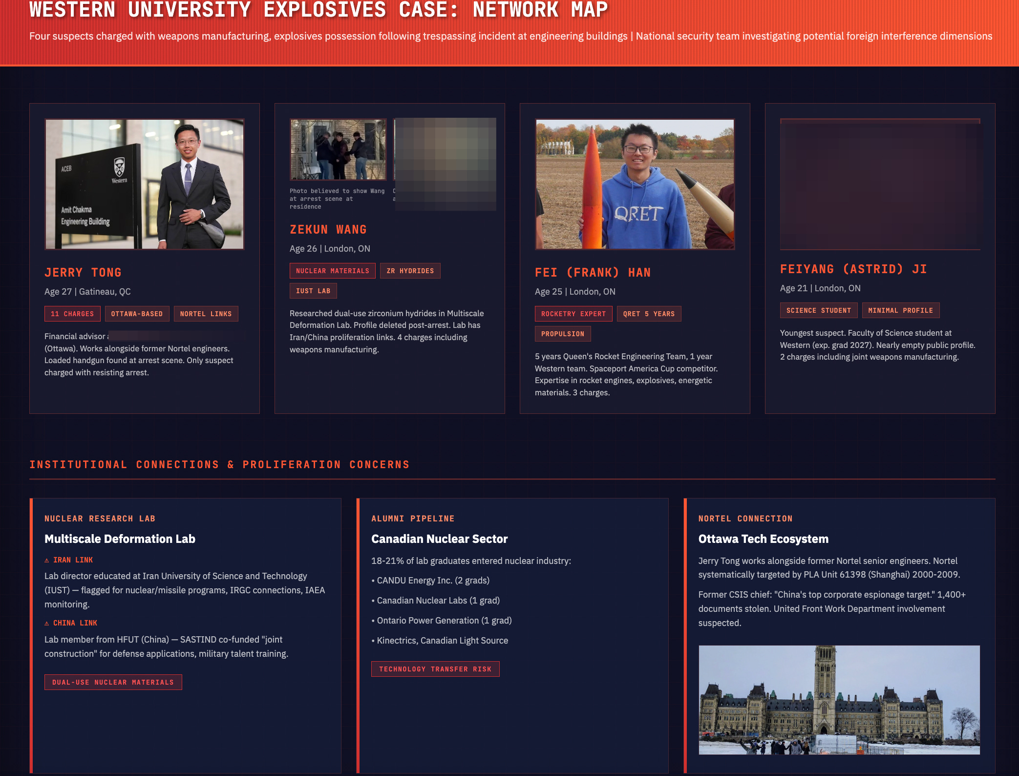 Through confirmed court reporting and deep research into open-source records, The Bureau has established the backgrounds of the four suspects—all of whom requested Mandarin interpretation services in court proceedings—and identified factors that Canadian police and national security investigators may be examining.