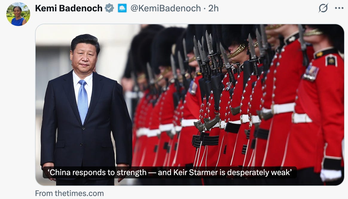 What a sad state Britian is in, just as is Canada. I can now see the correlation of the Starmer Labour Party and Canada's Liberal Regime of the Progressive ideology (Carney) and how easily they intertwine with Communist/totaltarian foreign states. These elite and easily moulded politician's are rife with the need for power, control, and to hold all wealth. How easy it is to subvert the weak who are filled with greed. I beleive the whole interacting with China was done with the intent to making China a free and democratic country. What we have instead is China turning all Western Nations into communist dictatorships. They all reak with treason, subversion, greed, and the need for power over all. They salivate pure evil with every move and word filled with lies and a dangerous psycopathy.