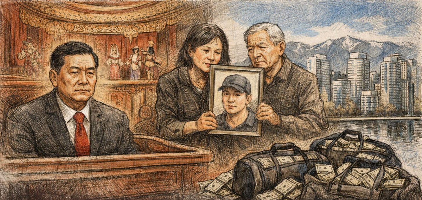 BRITISH COLUMBIA — It begins, as so many Vancouver real estate stories do, with a fortune that defies the logic of lawful wealth creation—too sudden, too large, too well-traveled, and too entangled with the machinery of China’s one-party state to feel like ordinary success—and hints at the familial web that would later unravel across the Pacific, after duffle bags of Chinese currency were converted into Canadian dollars to fund condo developments in Vancouver.